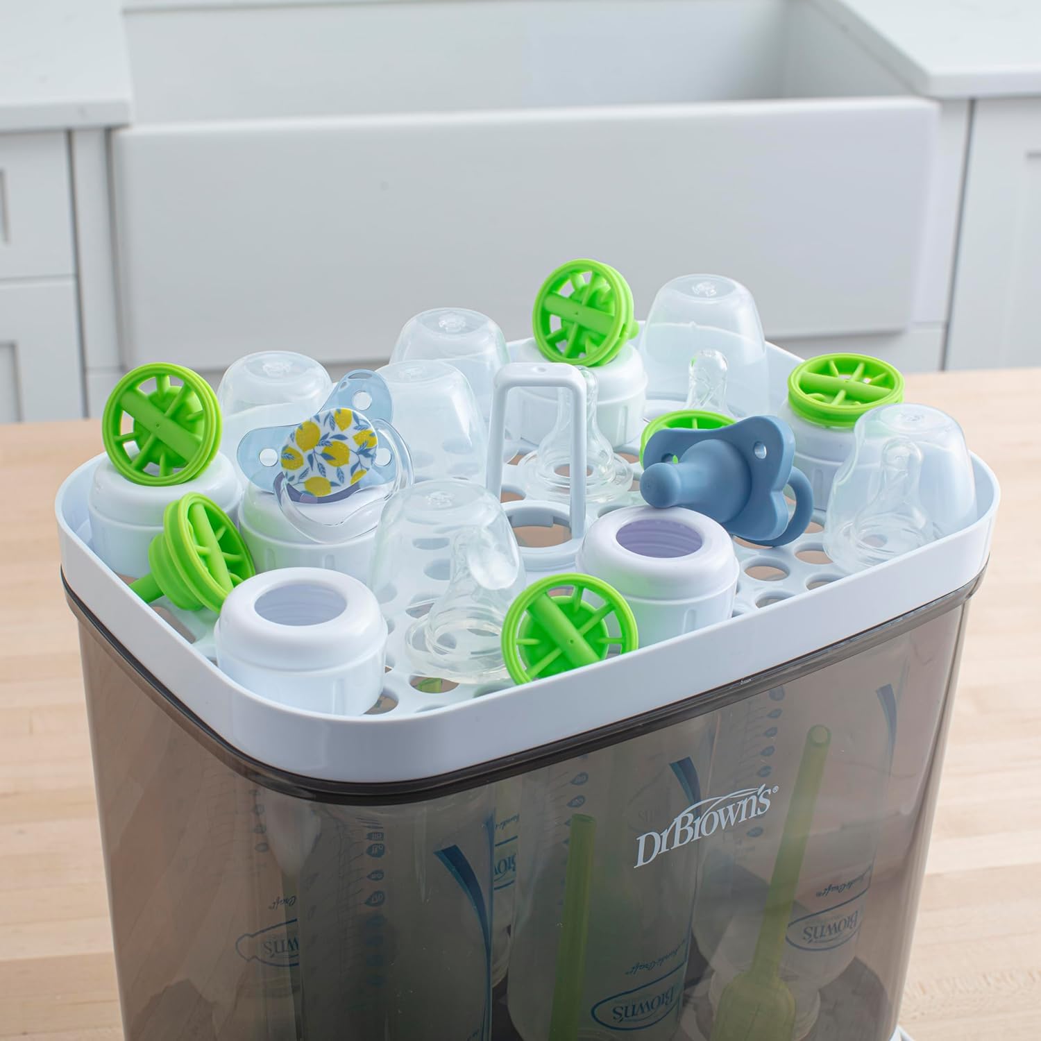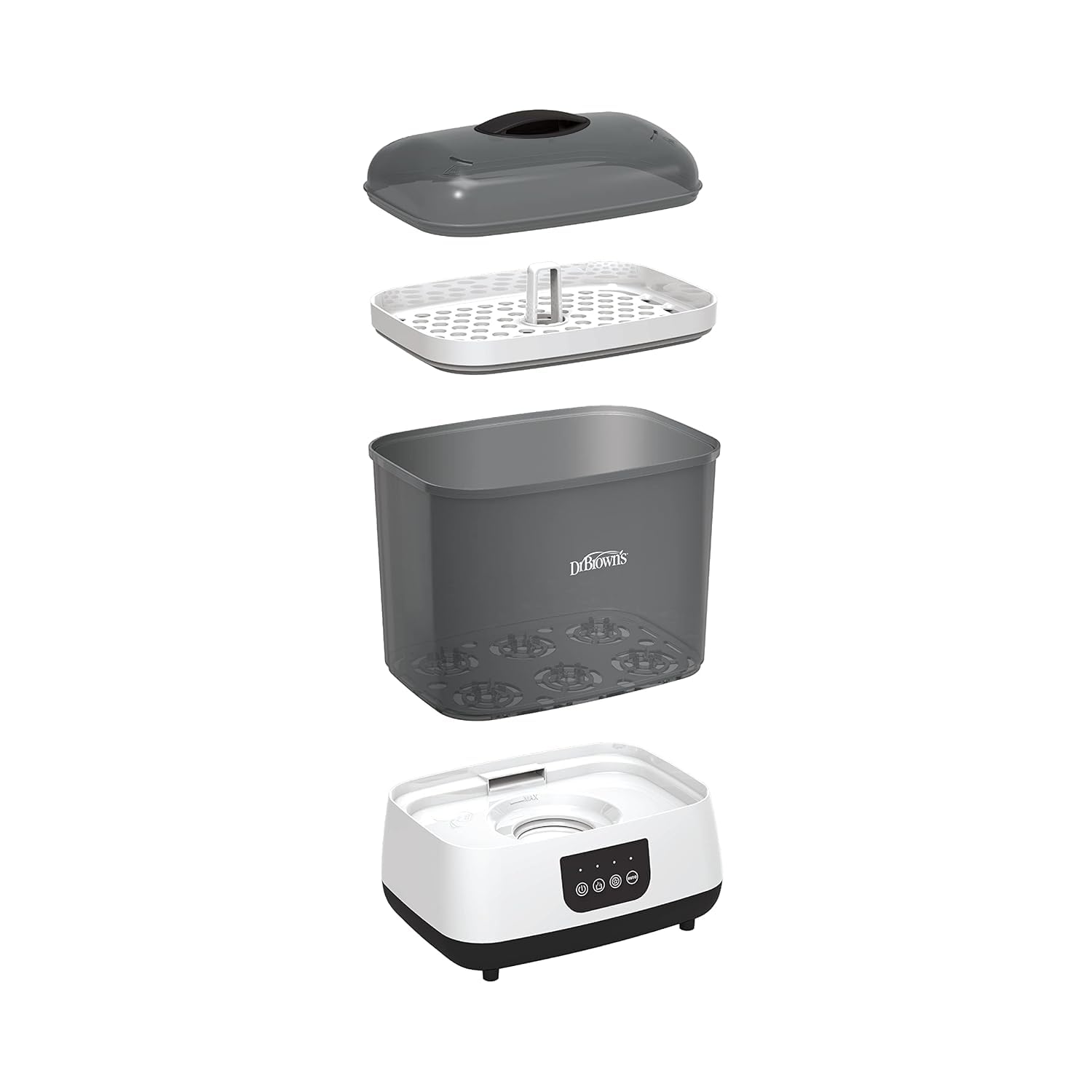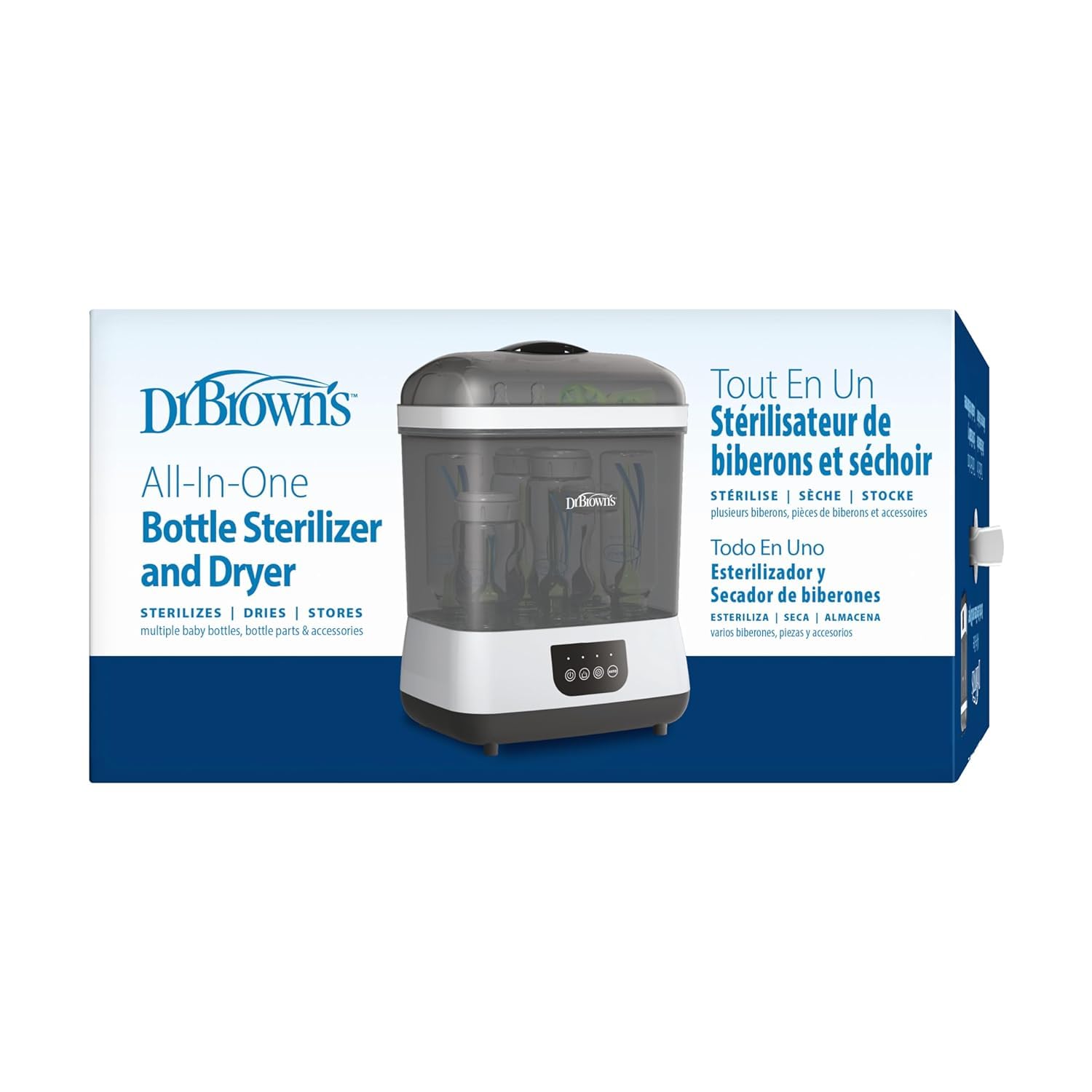 As a parent of a newborn, finding reliable and efficient ways to maintain cleanliness is paramount. The Dr. Brown’s™ Clean Steam Baby Bottle and Pacifier Sterilizer and Dryer has been an invaluable asset to our baby care routine, and I’m excited to share my experience.**Ease of Use:**Setting up the Dr. Brown’s Clean Steam Sterilizer was straightforward right out of the box. The instructions are clear, and the controls are user-friendly. It features a simple interface with intuitive buttons that make operation effortless. You can sterilize and dry your bottles, pacifiers, and even small toys with minimal fuss.**Performance:**The sterilizer uses natural steam to eliminate 99.9% of bacteria and germs, which is a huge relief for any parent concerned about their baby’s health. It’s incredibly efficient, completing the sterilization process in about 8 minutes. The drying cycle is equally impressive, leaving bottles and accessories completely dry without the need for manual wiping.**Capacity:**The unit is designed to handle up to six standard-sized bottles at once, along with their accessories, which is perfect for busy days. It also has adjustable trays, allowing you to accommodate larger bottles or more items if needed. This feature is particularly useful when you have multiple bottles and pacifiers to sterilize at once.**Build Quality:**The Dr. Brown’s sterilizer is made from high-quality, BPA-free plastic, ensuring it is safe for your baby’s items. The design is sleek and modern, fitting well on most countertops without taking up too much space. The build feels sturdy and durable, which gives confidence in its longevity.**Cleaning and Maintenance:**One of the standout features is the ease of cleaning. The water reservoir is detachable, making it simple to empty and refill. The interior is also easy to wipe down, preventing any buildup of residue. The sterilizer has a self-cleaning feature that helps keep it in top condition with minimal effort on my part.**Safety Features:**Safety is a top priority, and this sterilizer does not disappoint. It includes an automatic shut-off feature that activates when the cycle is complete, preventing any risk of overheating. The handles and lid are designed to be cool to the touch, reducing the risk of burns.**Final Thoughts:**Overall, the Dr. Brown’s™ Clean Steam Baby Bottle and Pacifier Sterilizer and Dryer has exceeded my expectations in every way. It provides peace of mind with its thorough sterilization and convenient drying capabilities, making it a crucial tool in our daily baby care routine. For any parent looking to simplify bottle and pacifier cleaning, this product is highly recommended.